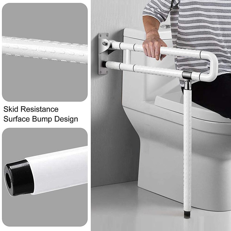 - 【Flip-Up Design and Space Efficient】Our folding grab bar flip-up design with 90°vertical rotation, help you save precious bathroom space when not in use, and great for tiny bathroom and toilet.