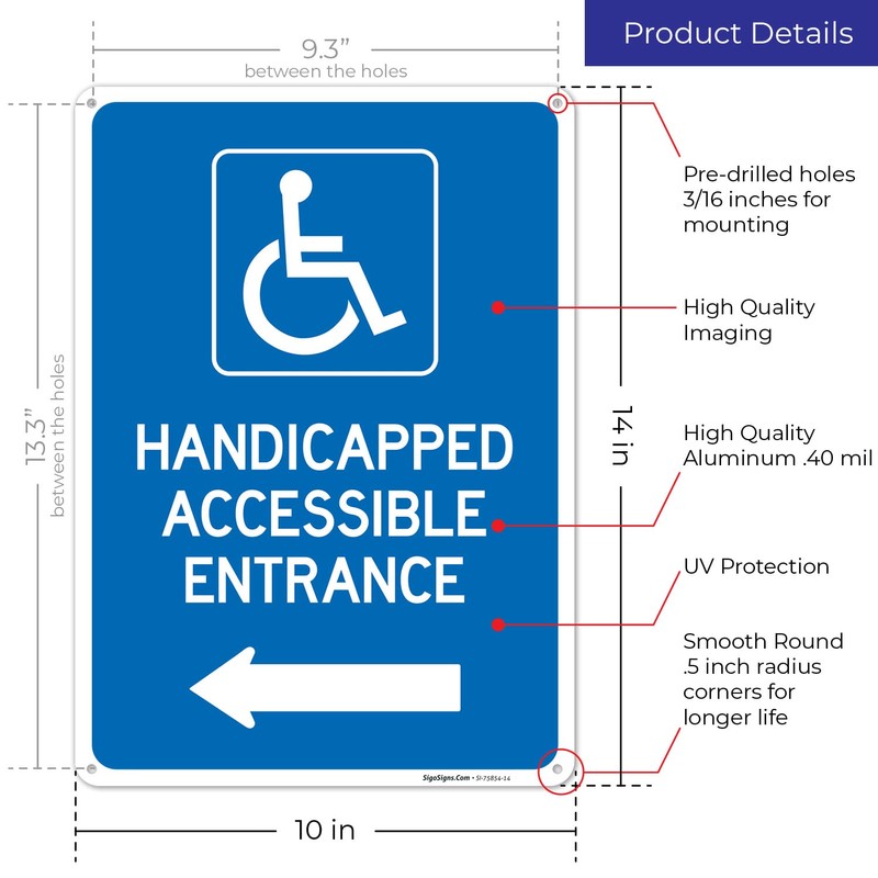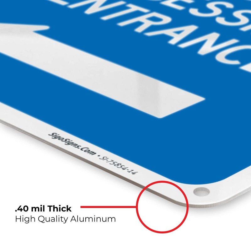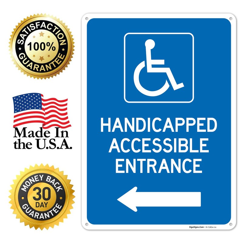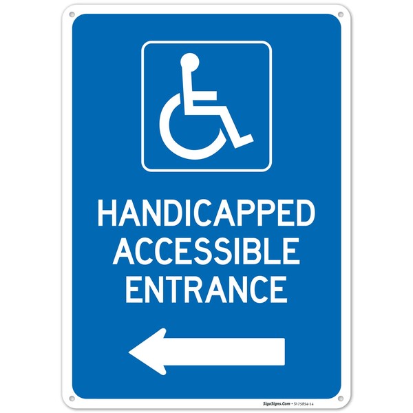 Handicapped Accessible Entrance with Left Arrow Sign, 10x14 Inches, Rust Free .040 Aluminum, Fade Resistant, Made in USA