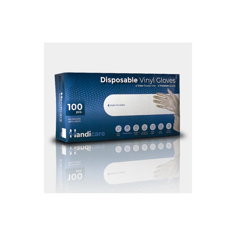 HandiCare Clear Disposable Vinyl Powder Free Gloves 100 Pack - Medium