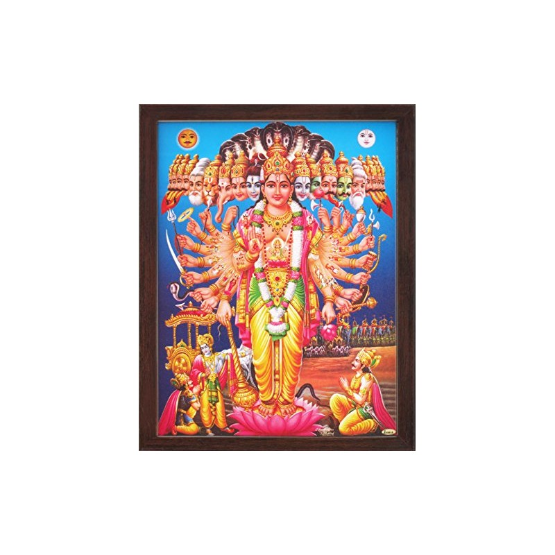 Handicraft Store Krishna Showing His Vishnu Roopa to Arjuna in Mahabharat Battle Field, a Religious & Elegant Poster with Frame with Frame, Must for Office/Home/Religious