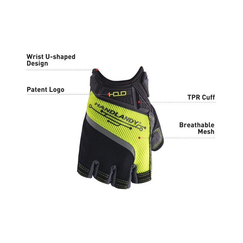 HANDLANDY Fingerless Work Gloves Men Half Finger Work Glove Grip Shock Absorbing Breathable Uwrist TPR Anti-Collision Gloves (XL, fi-Green)