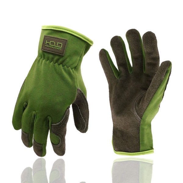 HANDLANDY Leather Gardening Gloves, Utility Work Gloves for Drivers, Mechanics - Premium Split Cowhide Dexterity & Breathable Design (Large)