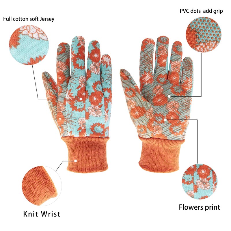 - Jersey garden gloves with PVC mini dots on palms and fingers, provide extra grip for well hold up.