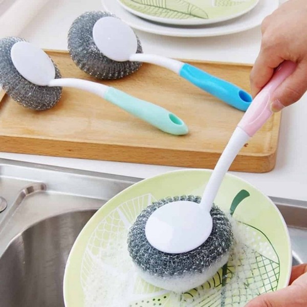 Handled Steel Scrubber Kitchen Dish Brush Kitchen Dish Brush Pink 4ea