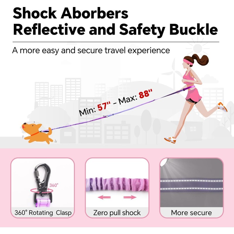 - Hands-Free Leash: Made of high-strength materials and wear-resistant nylon, this leash can withstand the pull of up to 100 pounds on large dogs, a 360° swivel latch, it's sturdy and lightweight, and features a reflective strip for night visibility. Bungee traction straps can be removed from the belt and used as hand traction straps, or kept attached for added safety. Make your experience more comfortable and pleasant.