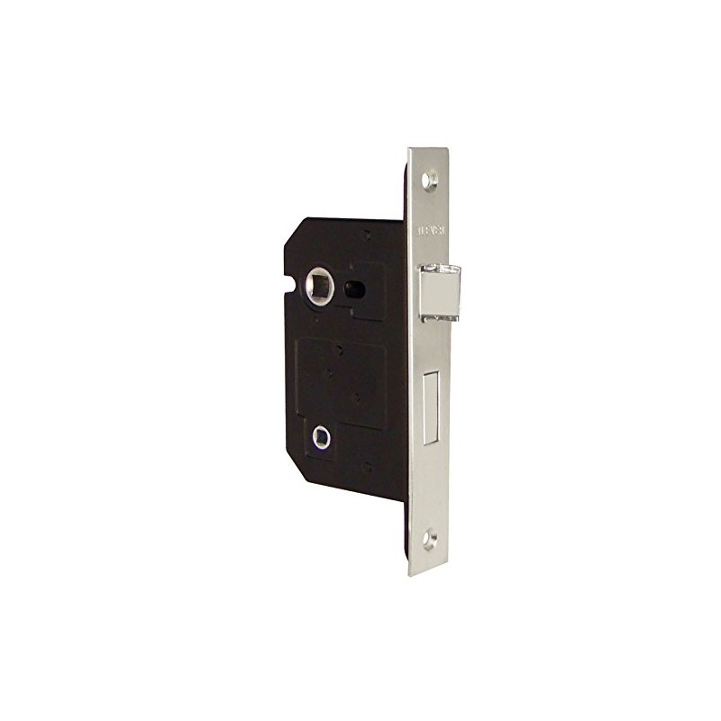 - 75mm Total Length Reversible Bathroom Sashlock Supplied with Strike Plate and 4 Screws. Distance from Edge of lock to Centre of Spindle Hole 57mm.