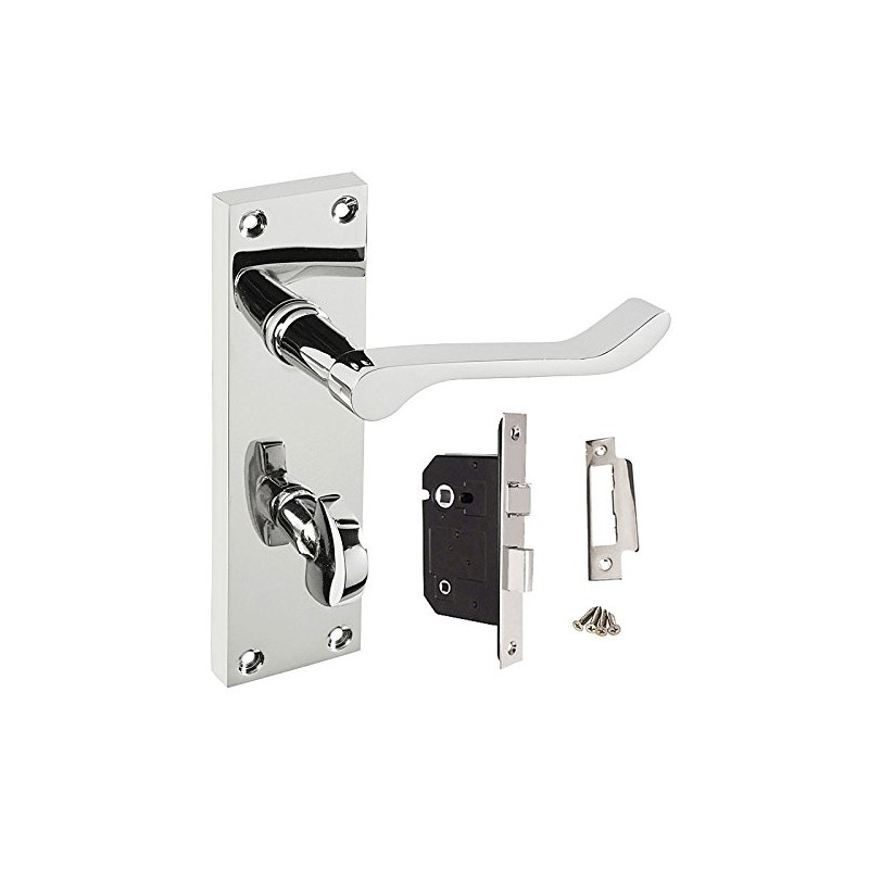 HANDLESTORE Victorian Scroll Bathroom Door Handle - Lock Options - Polished Chrome (Handle + 63mm Lock)