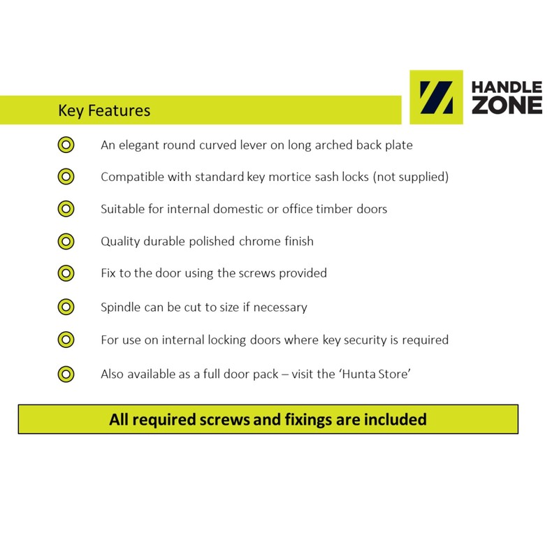 - FEATURES: Featuring a quality polished chrome finish, these door handles are made from zinc with multi layered chrome plating. Also available in latching and bathroom function. All our handles are available in full door packs too. Check out our Hunta brand store for matching accessories!