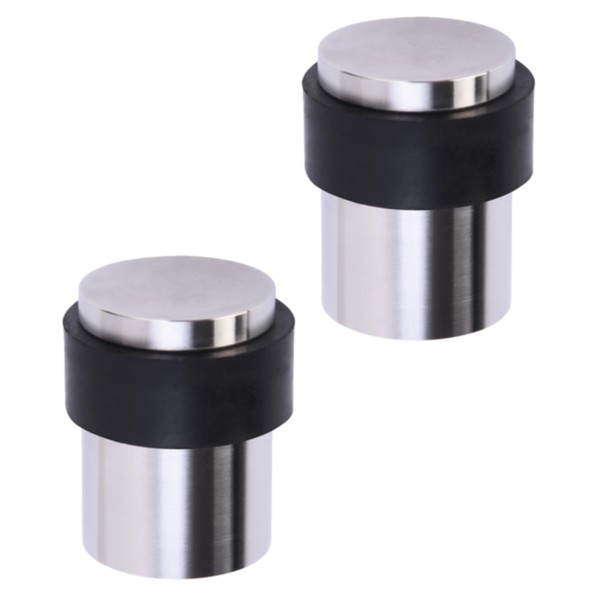 HANDLEZONE® 2 Pack Floor Mounted Door Stop 30mm x 40mm, Collared with Rubber Buffer Stopper, Concealed Fixing - Satin Stainless Steel