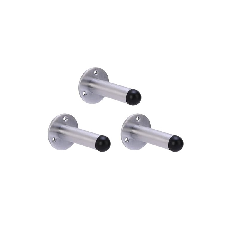 HANDLEZONE® 3 Pack 75mm / 3 inch Projecting Skirting Or Wall Mounted Door Stop, Rubber Buffer Stopper - Satin Chrome