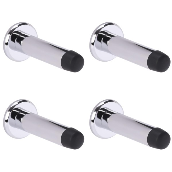 HANDLEZONE® 4 Pack 75mm / 3 inch Projecting Skirting Or Wall Mounted Door Stop, Concealed Fixing, Rubber Buffer Stopper - Polished Chrome
