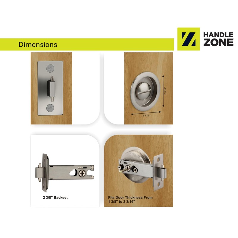 HANDLEZONE® Round Sliding Privacy Door Lock Kit – Satin Nickel Plated (SNP) – Finger Pull with Hook Lock – for Bathroom or Toilet Sliding Doors
