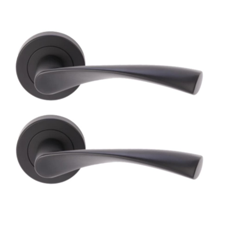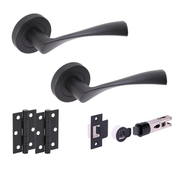 HANDLEZONE® Zena Bullet Internal Door Handle Latch Pack, Complete with Lever On Rose Handles, Round Latch, Ball Bearing Hinges - Black Matt