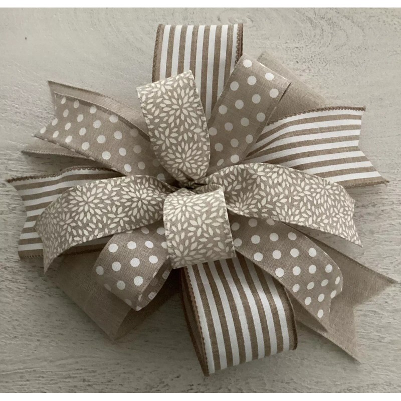 • Made with 8 loops 1.5" & 2.5” ribbon; Beige and White Print Ribbons