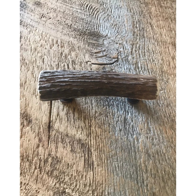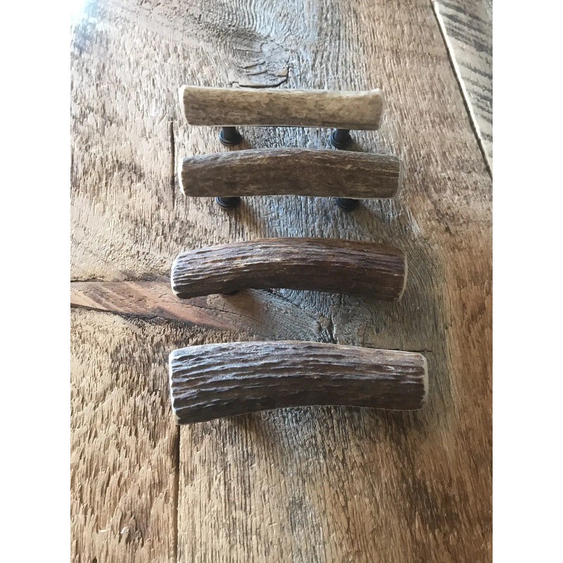 These antler pieces are adhered to an oil rubbed bronze base with 3” on center holes. Each pull comes with screws for mounting!