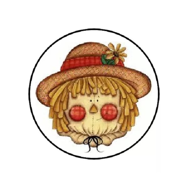 handmade 48 CUTE FALL THANKSGIVING SCARECROW ENVELOPE SEALS LABELS STICKERS 1.2" ROUND