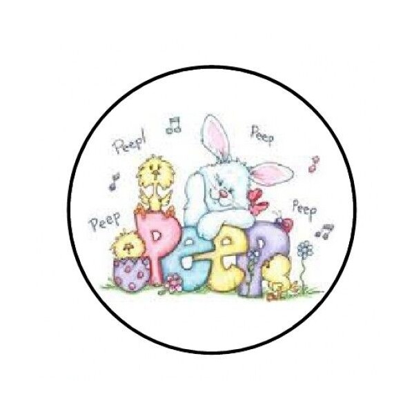 handmade 48 EASTER BUNNY CHICKS PEEP ENVELOPE SEALS LABELS STICKERS 1.2" ROUND
