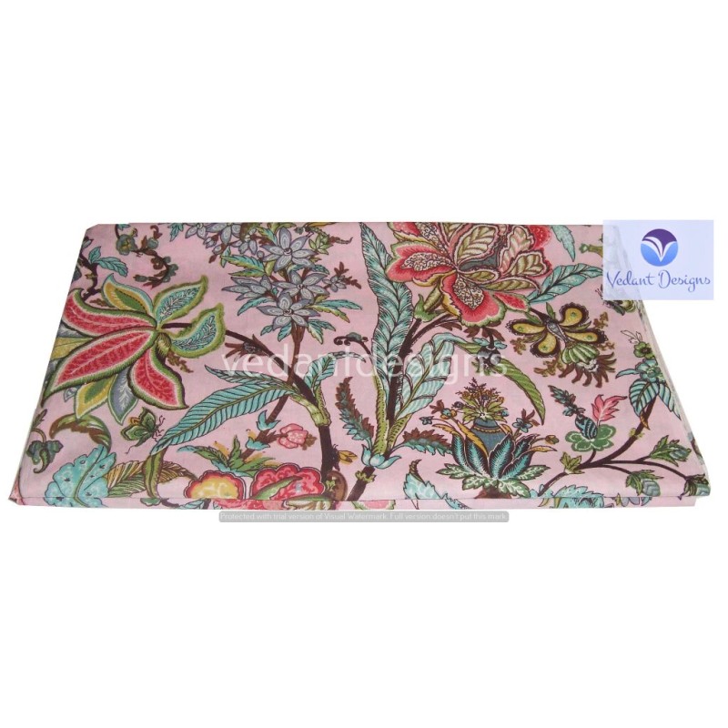 Handmade 5 Yard Indian Hand Block Floral Print Pure Cotton Running Fabric Pink