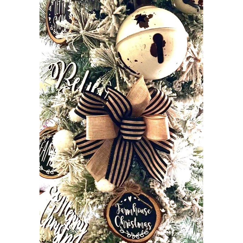 Handmade 6 " set of 2 STRIPE FARMHOUSE BOWS WIRED RIBBON for TREE, PACAKAGES # 219-C fd