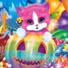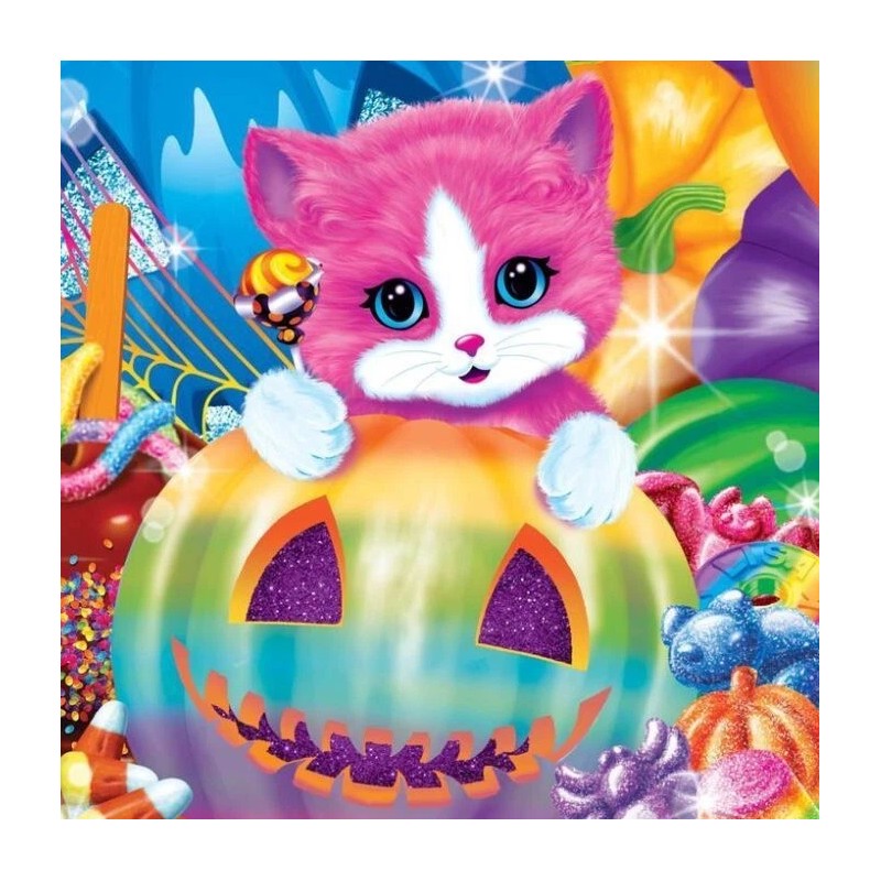 "Handmade" 80's Rainbow Halloween Kitty in Pumpkin 8x8 Cotton Fabric Block