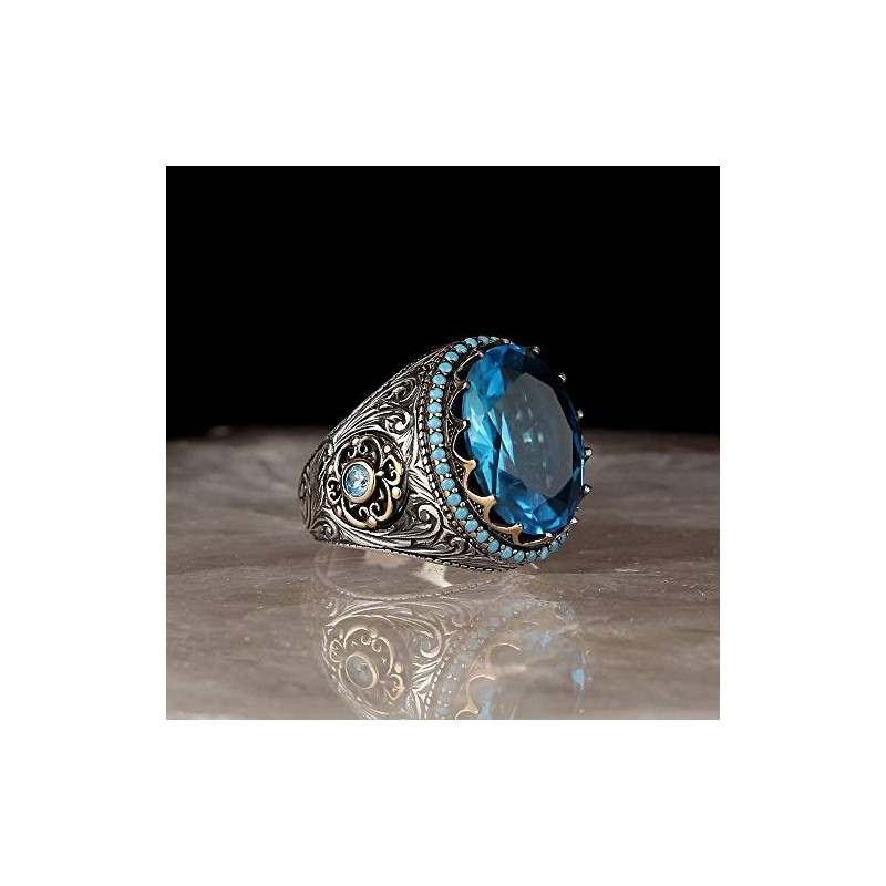 Handmade 925 Sterling Silver Men Rings with Turquoise Crystal Stone N-Z3 RRP £50 for ONLY £19.99 (O)