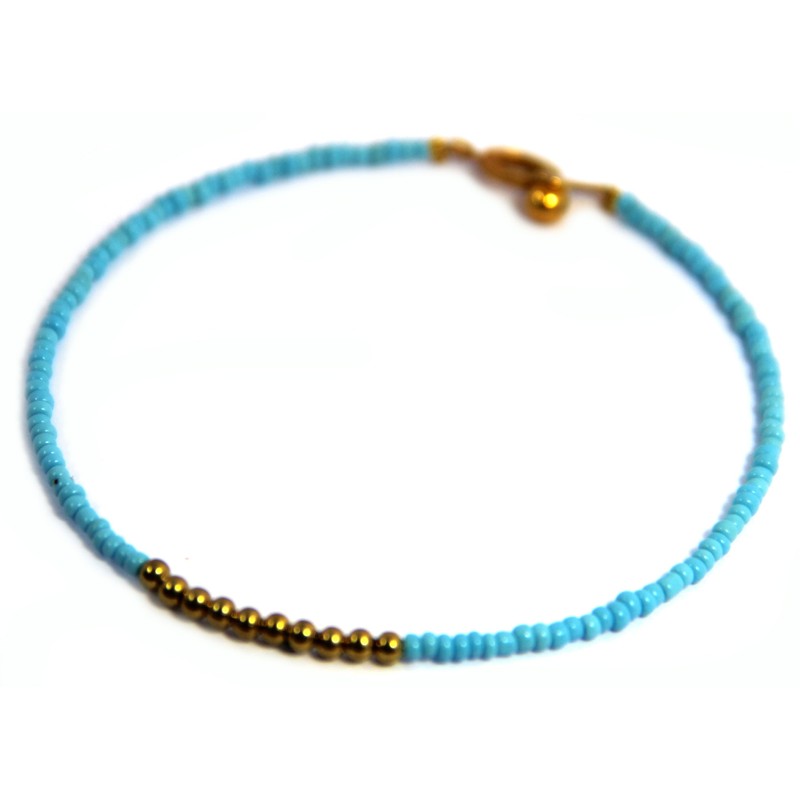 Handmade Anklet, Blue Beads, Bohemian (P5)
