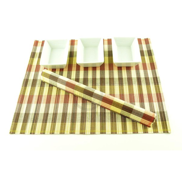 4 Handmade Bamboo Placemats/Tablemats in Check Pattern, Brown-Yellow Colours, P087