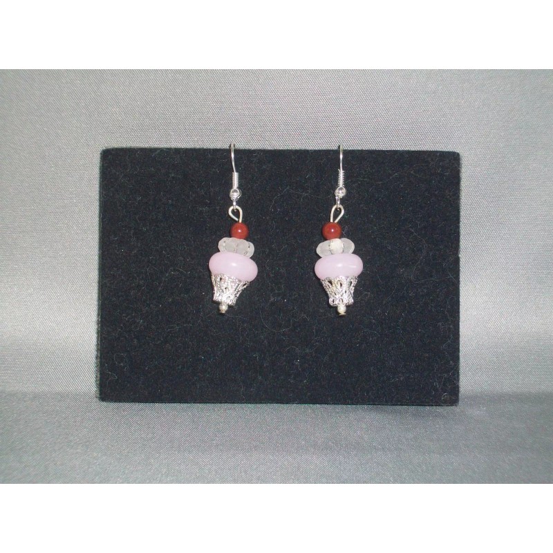 HANDMADE Beaded Pink Cupcake with Cherry on Top Pierced Earrings - NEW