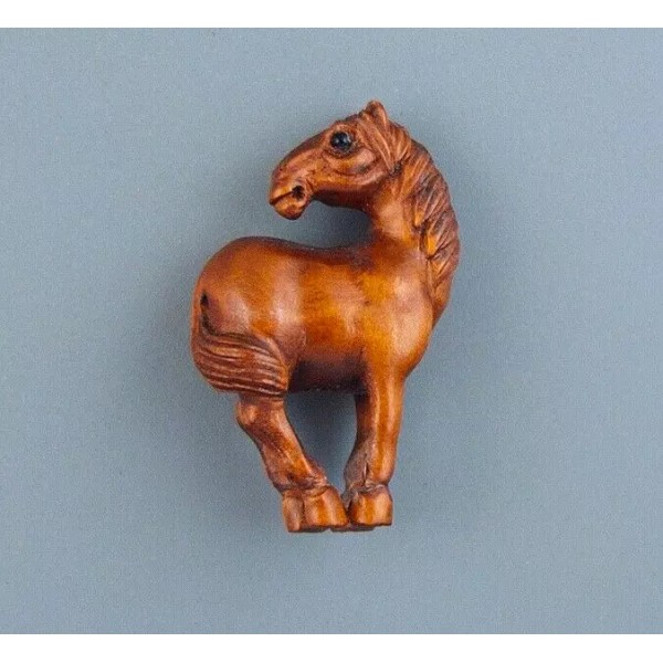 HANDMADE BOXWOOD OJIME BEAD - HORSE