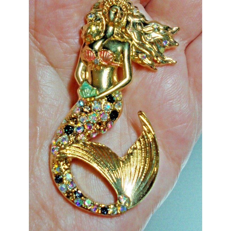 Handmade by Me 3 34" Drop Gold Plated Faux Gem Sparkling Mermaid Key Ring Glitzy Bag Dangle