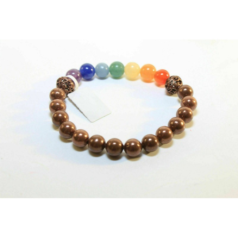 Handmade by mmCrystals Copper 7 Chakra Crystal Bracelet Adjustable Stretchy 8 mm Beaded Gemstone Healin