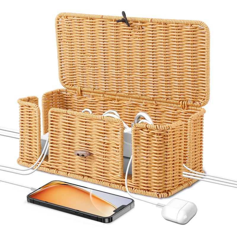- Easy to use: rattan cable management box is a hidden cable box without installation, simply open the lid, place the plug and cable in order, the cable from the side opening, effectively avoiding the trouble of piercing, so you no longer need to worry about the desktop mess and trouble
