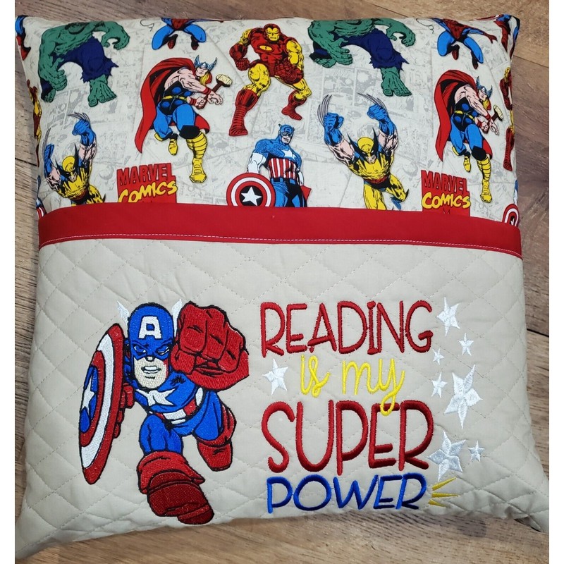 Handmade Captain America Reading Book Pocket Pillow 16"X16"