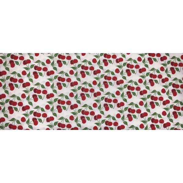 "Handmade" Cherry Fruit Valance Glitter Red Cherries Green Leaf Stem White Window Curtain