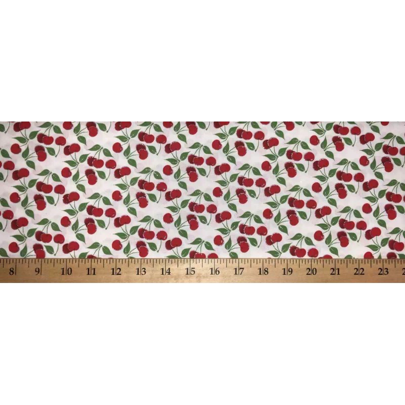 Cherry Fruit Valance Glitter Red Cherries Green Leaf Stem White Window Curtain Topper