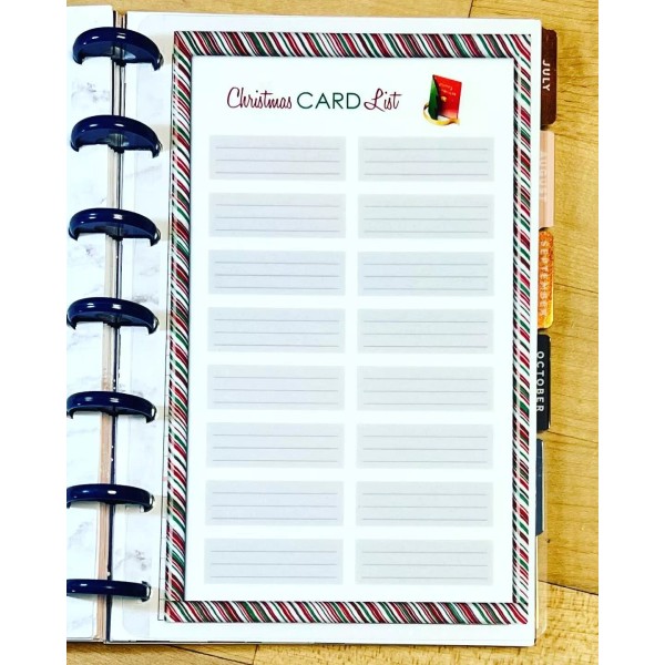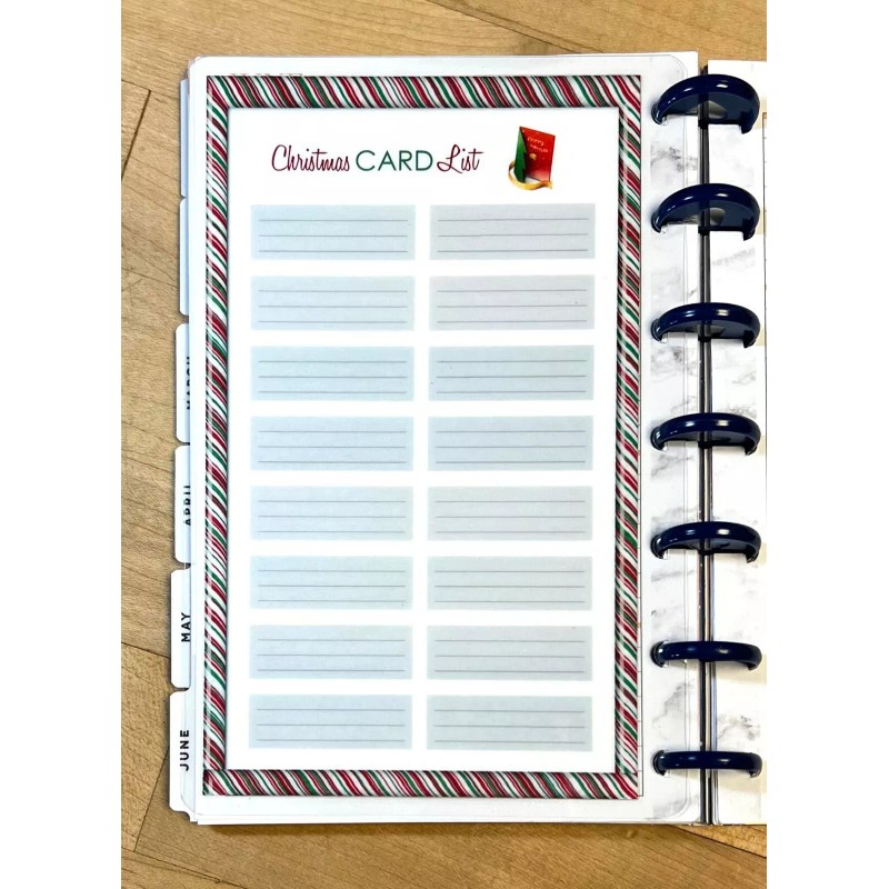 Handmade Christmas Card List Dashboard Insert 4 use w/ Mini Happy Planner