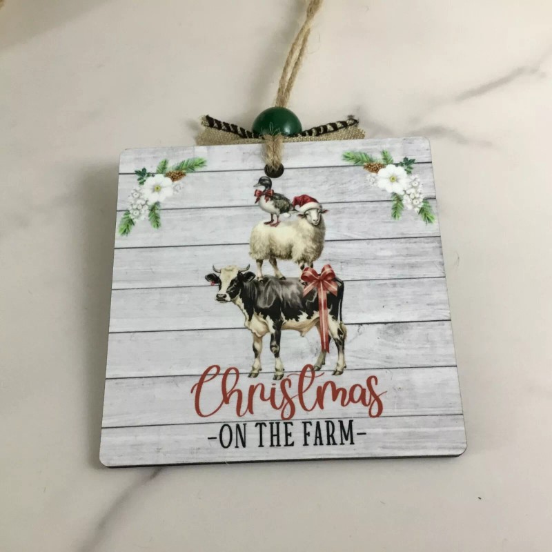 Handmade Christmas on the Farm Rustic Wooden Ornament Cow Sheep Duck