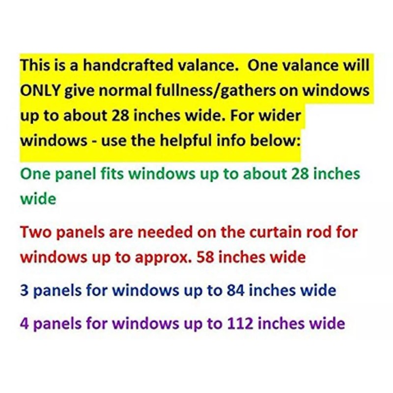 - Your curtain rod may need more than one of these valances - see helpful info below in yellow