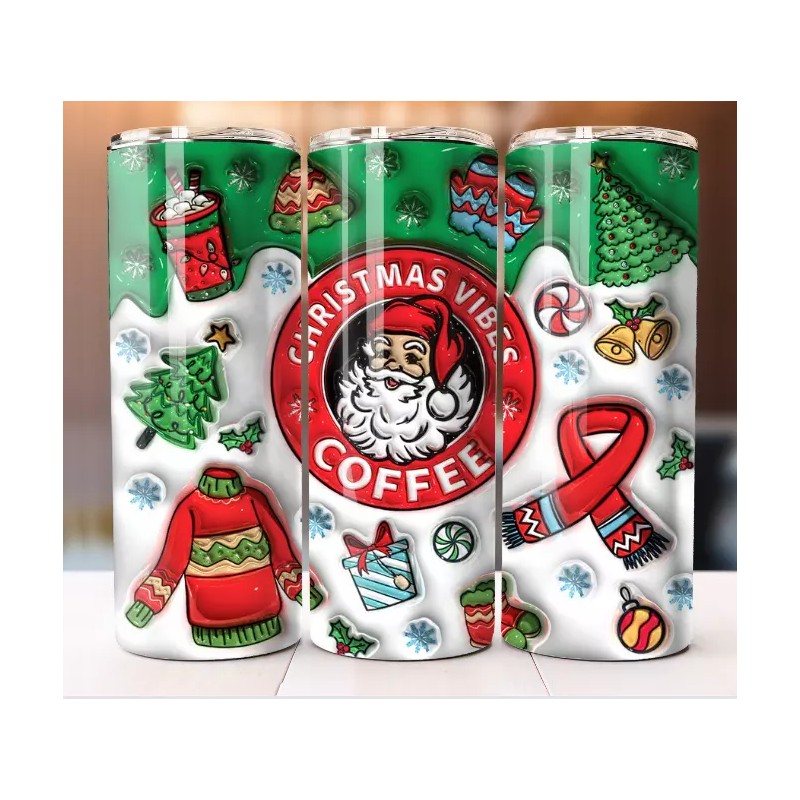 Handmade Christmas Vibes 3D Inflated Design Cup Tumbler Mug 20 oz Stainless Steel