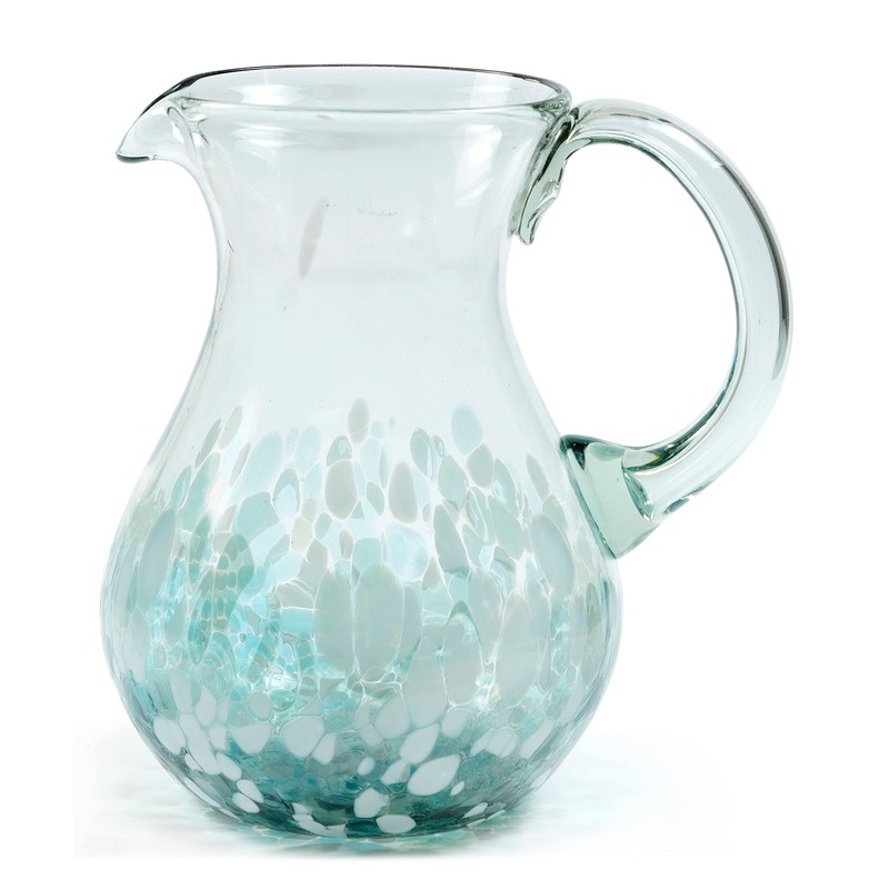 HANDMADE CON AMOR – 80 oz Hand Blown Mexican Pitcher - Ocean Blue Confetti