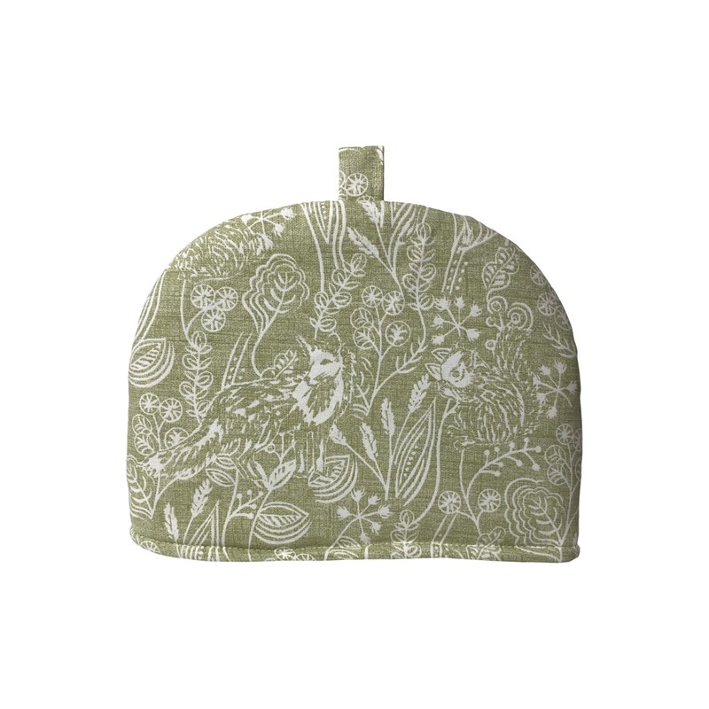 Handmade Countryside Print Stag Fox Rabbit Sage Green Tea Cosy