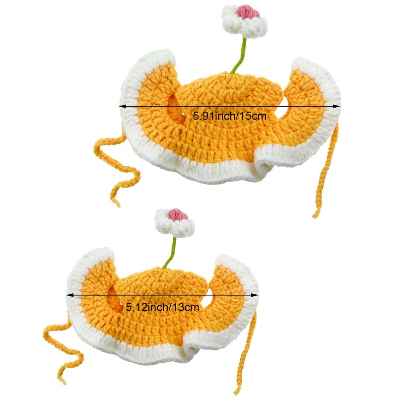 - HANDCRAFTED DESIGN: Adorable yellow flower-themed crochet hat with white ruffled petals and decorative stem, perfect for dressing up your pet in style