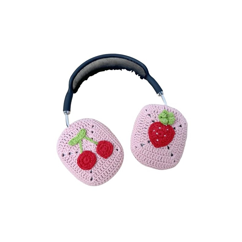 Handmade Crochet Pink Strawberry and Cherry Headphone Cover – Compatible with Sony xm4, Protective Case for Music Lovers