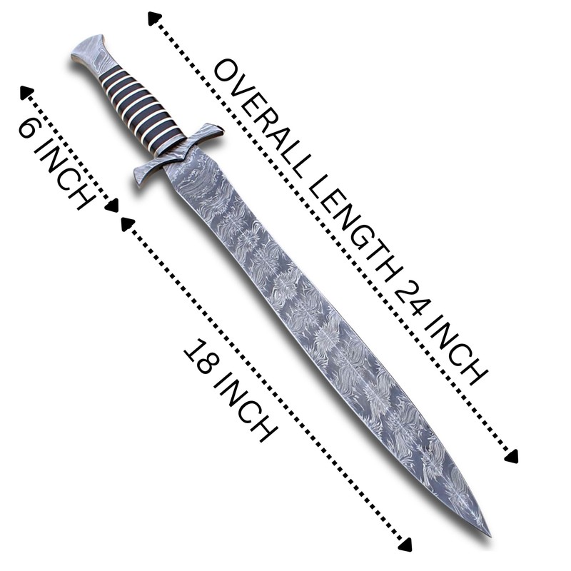 Micarta and Resin Handle, Damascus Stel Guard and Pommel, High Quality Finishing on Handle, Non Slip and Perfect Grip for Strong and Comfortable Grasp.