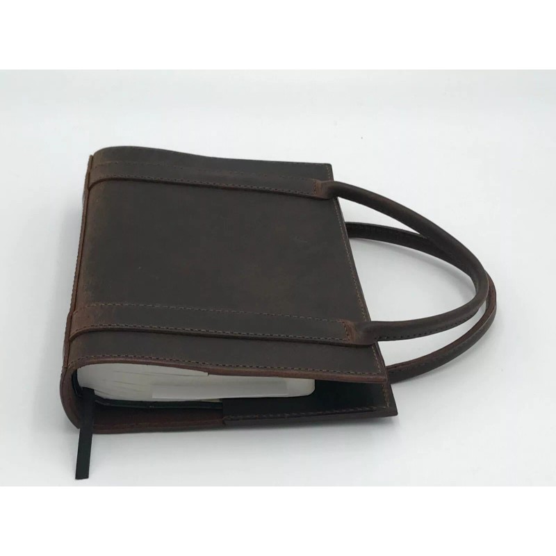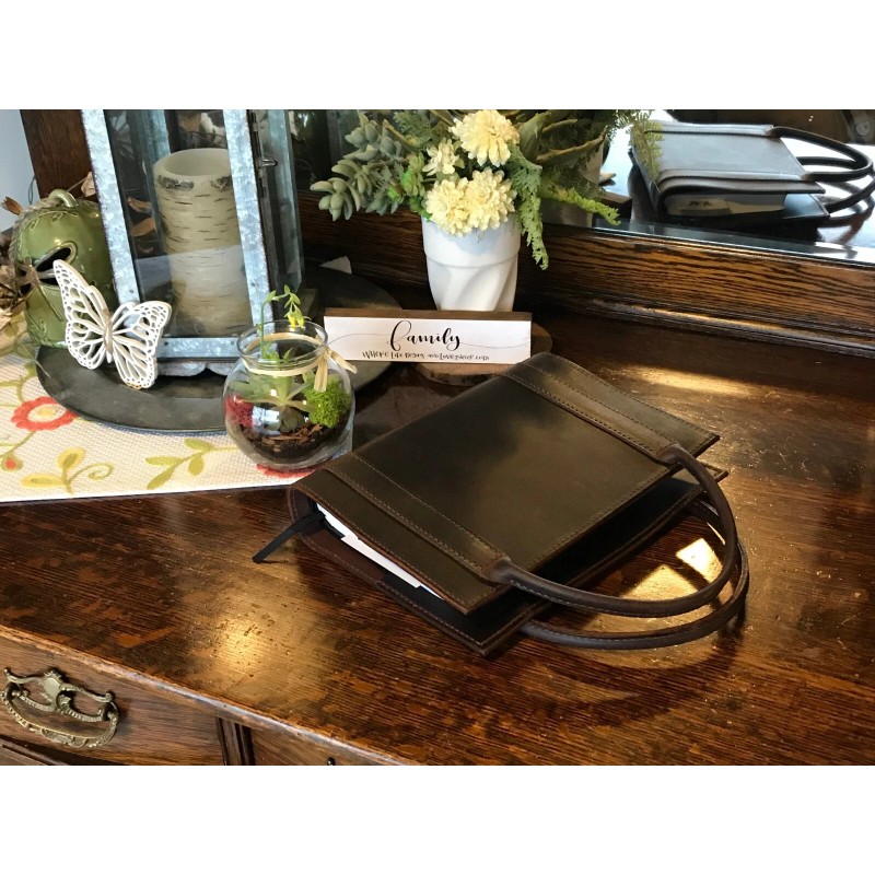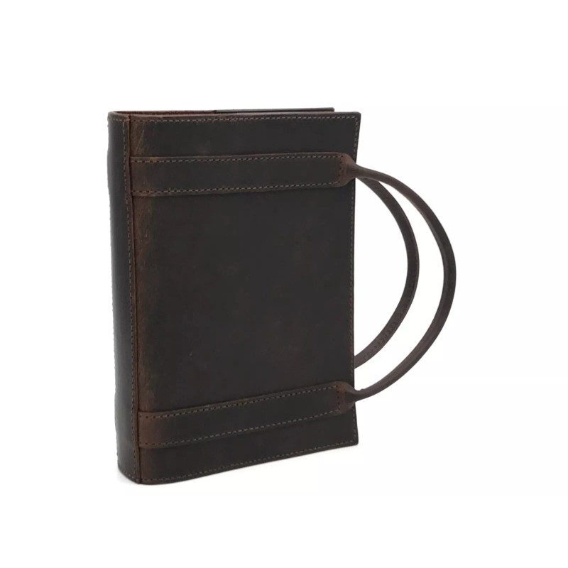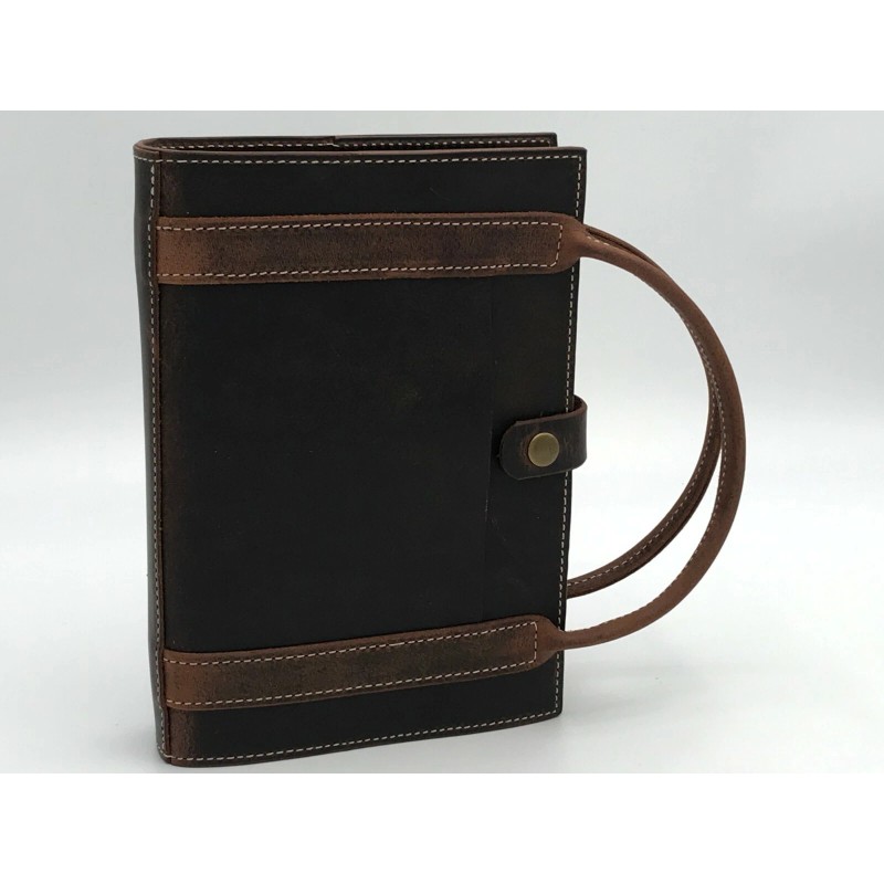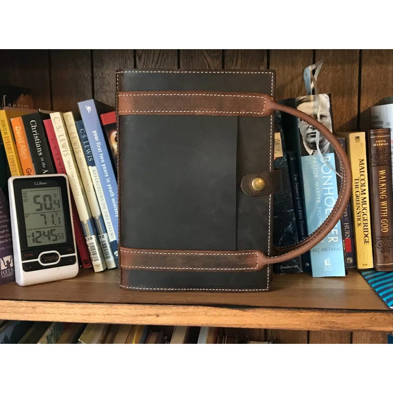 Handmade Distressed Leather Bible Book Cover Sleeve Pockets Handle Custom Case Amish Made - No Message, Cover with Handle