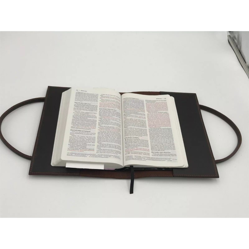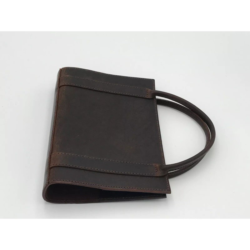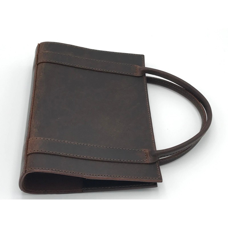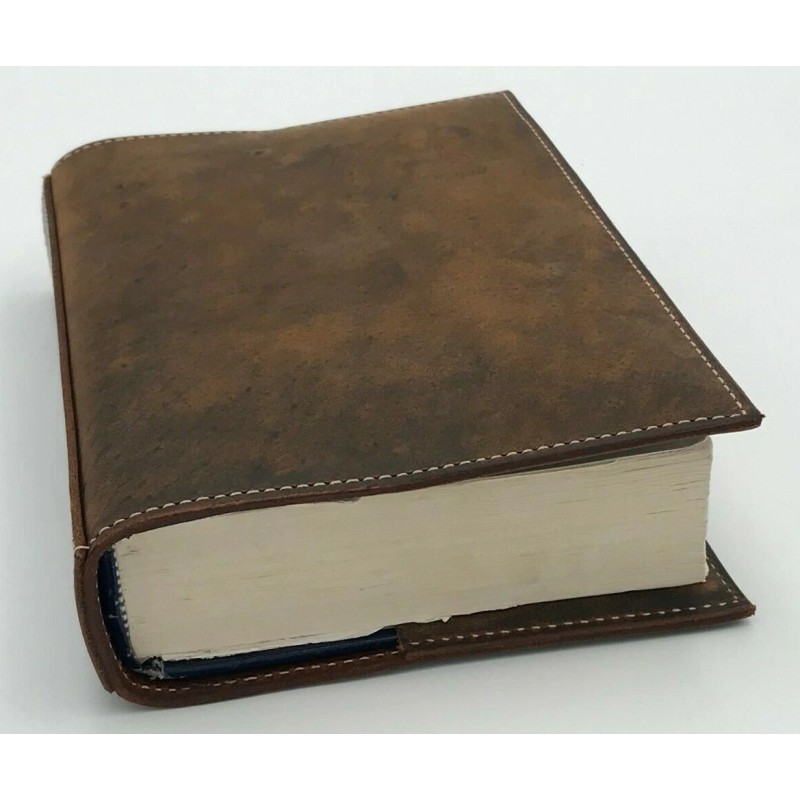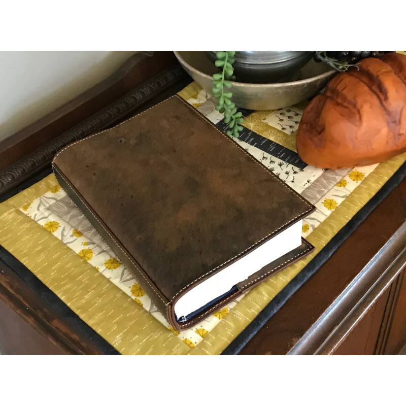 Handmade Distressed Leather Bible Book Cover Sleeve Pockets Handle Custom Case Amish Made - No Message, Cover with Handle