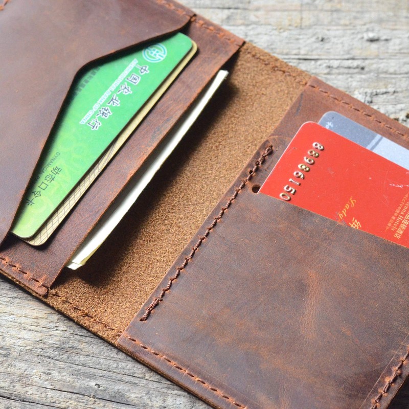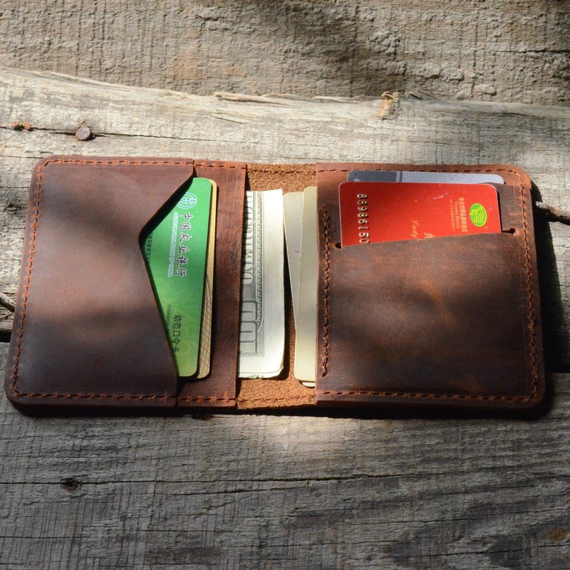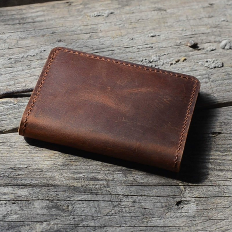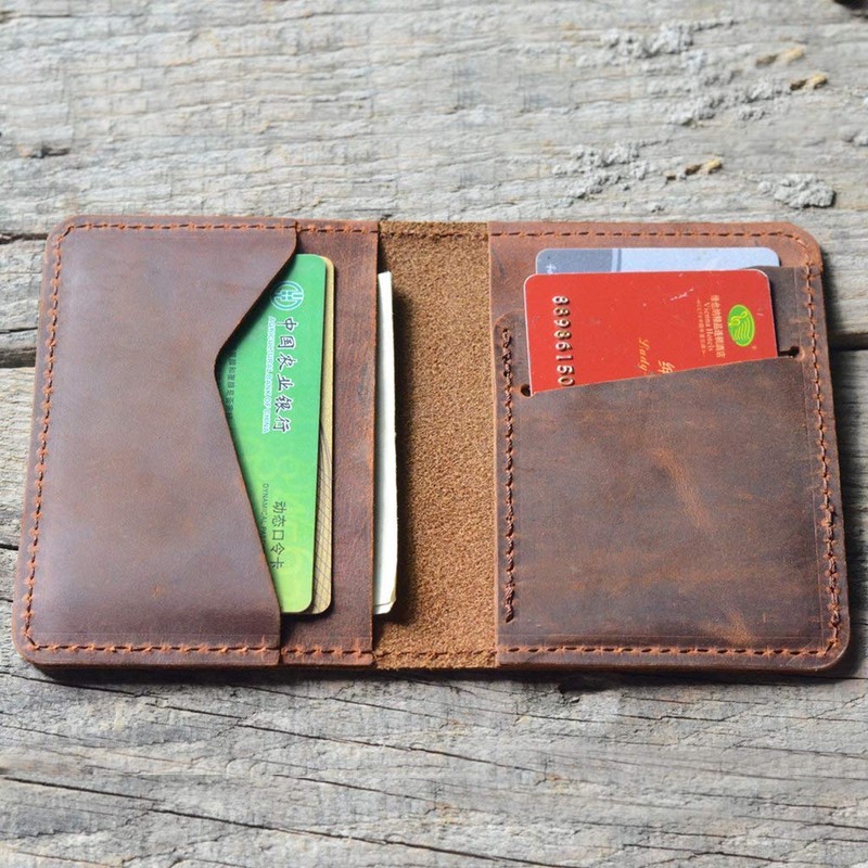 Handmade Distressed Men's Minimalist Leather Wallet Card Holder Wallets for Gifts Brown Flower, brown, Style 1