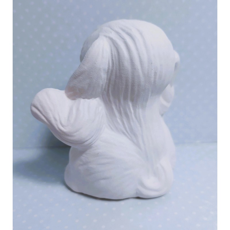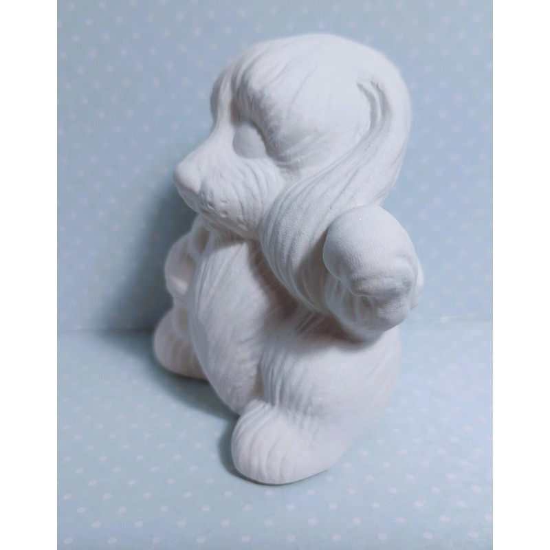 Dog (Doc Holliday Mold) measures approximately 4" tall and 3.5" across. Ceramic bisque ready to paint.