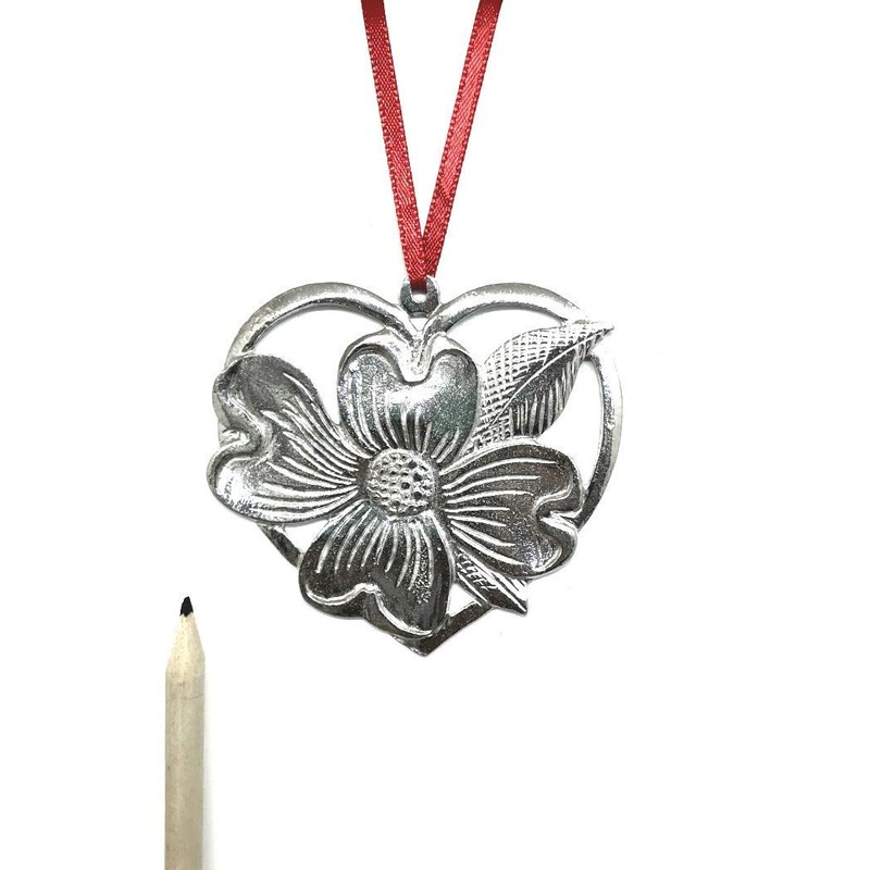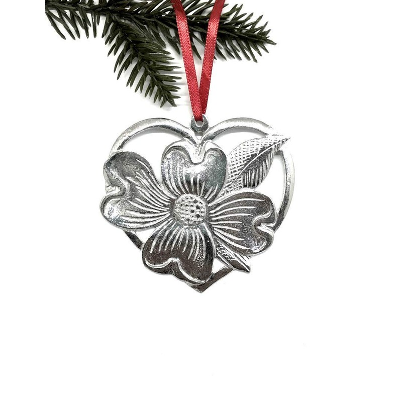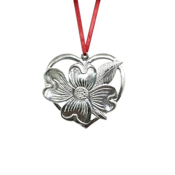 Handmade Dogwood Flower Heart Holiday Ornament Pewter