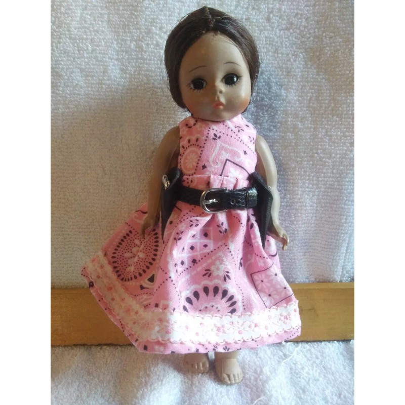 Doll Gun Belt & Guns For 7 1/2'' To 12'' Doll Belt Can Be Cut to Fit. The gun belt is all black with silver guns handmade. Could be used as a replacement for Action Figures like (1973 Lone Ranger and Ton to ) and will fit Ginny,Madame Alex,Madeline and alot dolls. Condition is New. Shipped with USPS First Class Package. I do combine shipping . I always ship the cheapest way.